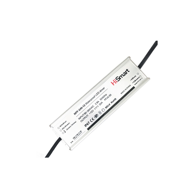 Power supply 12V, 20A, 240W, PFC, IP67.