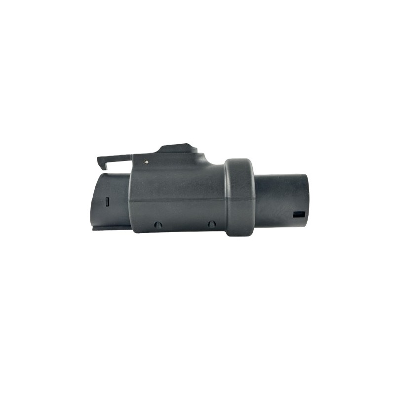 Electric vehicle charging cable adapter Type 2 female to Type 1 male.