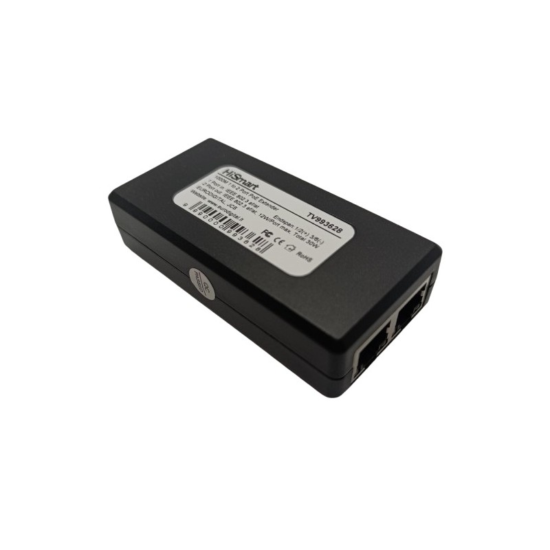 PoE and LAN extender for 100 meters. Transmits Ethernet data and PoE power.