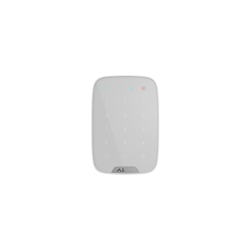 „Ajax KeyPad“ belaidė valdymo klaviatūra skirta „Ajax“ apsaugos sistemai valdyti – įjungti, išjunti apsaugą, aktyvinti tam tikras zonas. Saugus ir patogus naudojimas – apsauga įsijungia paspaudus vos dieną mygtuką arba suvedus kodą.