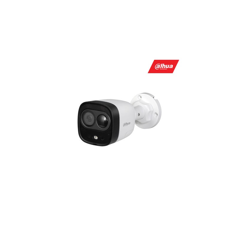 HD-CVI, TVI, AHD, CVBS FULL HD kamera cilindrinė su integruotu mikrofonu, LED pašvietimas iki 20m. (Smart IR) Diena/Naktis, 1/2.7" colio 2MP CMOS sensorius 1080P 1920×1080 25kps, 2.8mm fiksuotas objektyvas (objektyvo apžvalgos kampas 111°), Integruotas PIR judesio daviklis, integruota sirena, OSD meniu, HD-CVI technologija leidžia FULL HD vaizdą perduoti per koaksialinį kabelį neprarandant kokybės - maks. atstumas iki 800m., LITE serija, modelis: DH-HAC-ME1200DP-LED (4nd Generation)