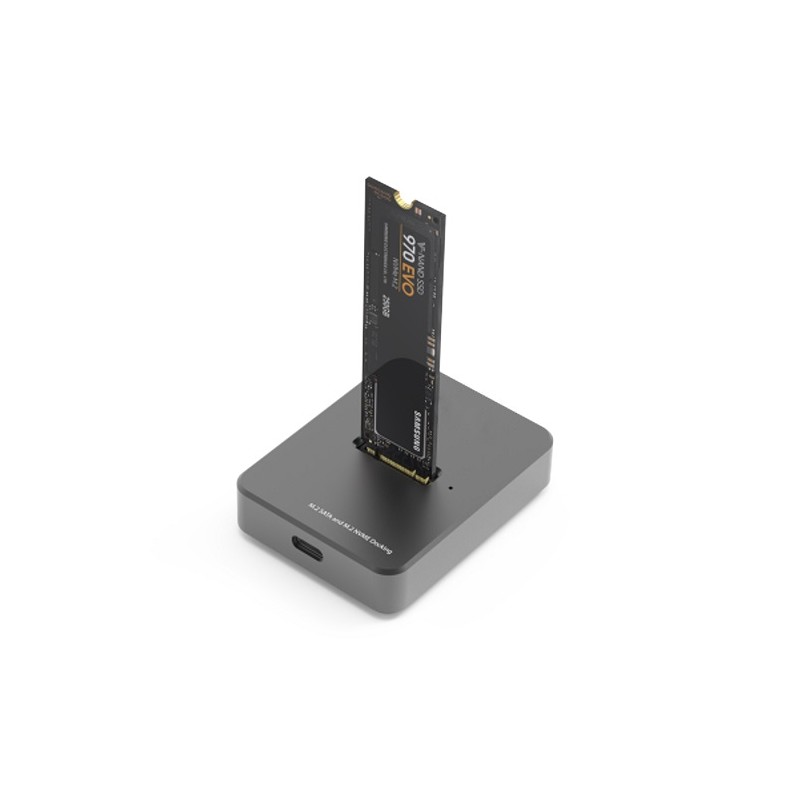 Vieno SSD disko docking station, su USB 3.1 Type-C sąsaja. Tinkamas M.2 SATA ar NVMe prievado SSD diskui.