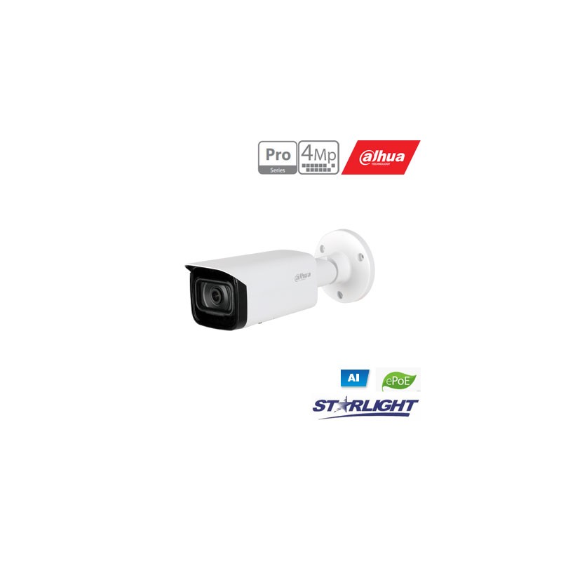 IP kamera cilindrinė AI 4MP STARLIGHT+ , Diena/Naktis su LXIR pašvietimu iki 50m., 1/8” colio STARLIGHT+ CMOS sensorius, 4MP(2688×1520) 1~25fps, fiksuotas objektyvas: 2.8mm apžalgos kampas 113°, BLC / HLC / HDR, tikras WDR 140 dB, ROI, IVS, koridoriaus režimas, 3D-DNR: triukšmų mažinimo technologija, H.265+, H.265, H.264+, H.264, H.264B, H.264H, integruotas SD atminties prievadas Max 256GB, PoE, ePoE iki 800m., IP67 atspari drėgmei, 3 ašių reguliavimas, palaiko: ONVIF (Profile S/Profile G), CGI, Milstone, Genetec standartus, Eco-savvy 4.0 AI serija (Pro AI), modelis; DH-IPC-HFW5442T-ASE 2.8mm