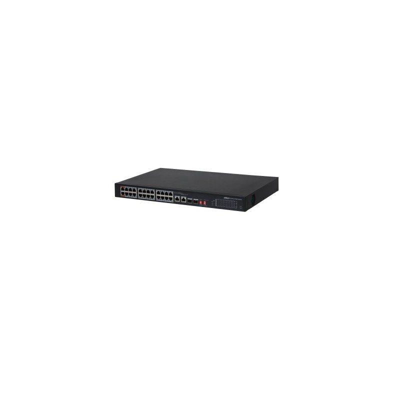 DH-PFS3226-24ET-240 is a 100 Mbps dual-port uplink unmanaged PoE switch. It supports functional DIP switch which provides port isolation, long distance power supply, PoE watchdog and QoS control. Featured with Gigabit uplink optical ports, it meets the need of long distance transmission. Applicable to small and micro-scale monitoring networks such as office desktops, schools, hotels, supermarkets, hospitals.