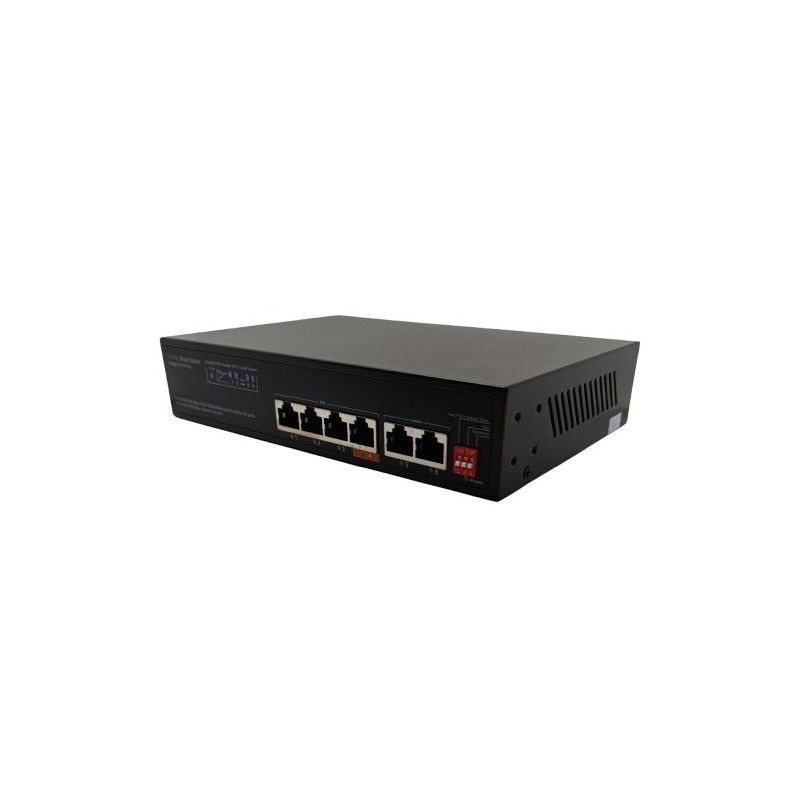 PoE šakotuvas turi 4 PoE prievadus po 10/100/1000Mbps ir 2 RJ45 uplink prievadus po 10/100/1000Mbps; 1-4 prievadai palaiko IEEE802.3af/at standartą, ketvirtas prievadas palaiko IEEE 802.3af/at/bt (iki 60W).