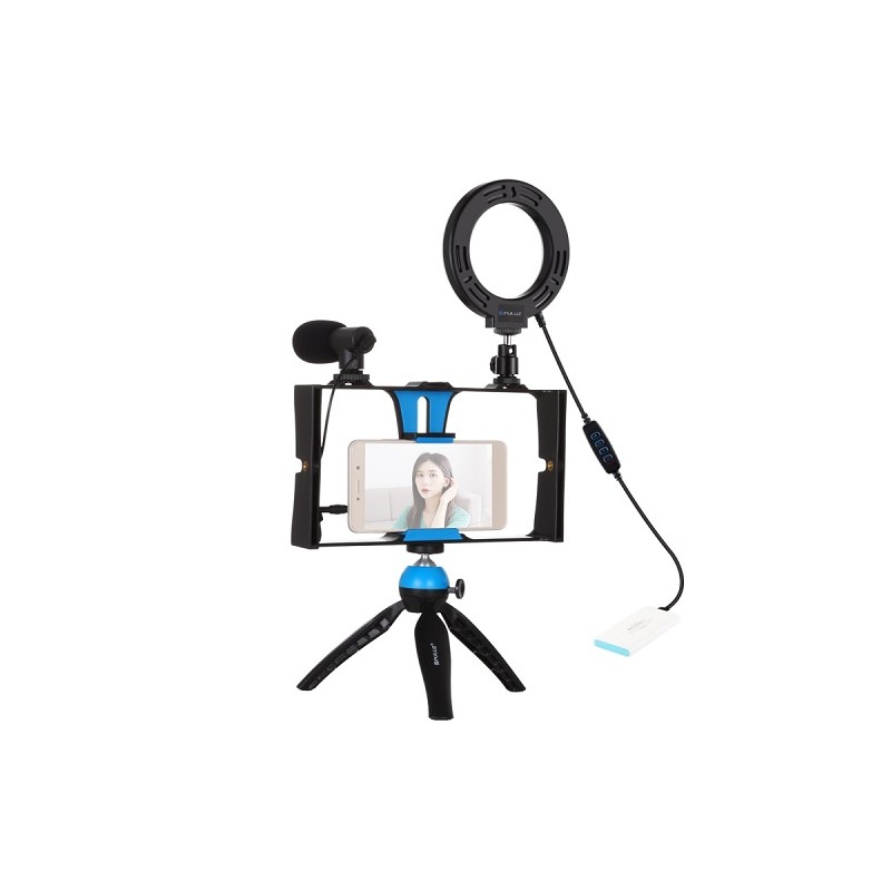 Tai studijinis apšvietimo, mikrofono ir fotografavimo bei filmavimo įrangos rinkinys, pritaikytas išmaniesiems telefonams.