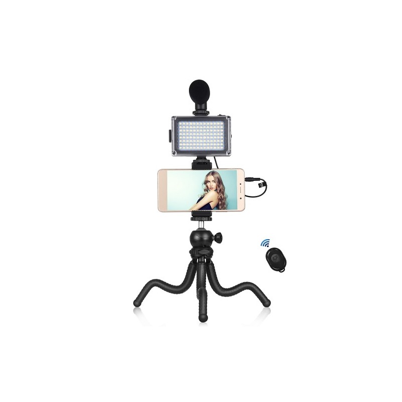 Blogerio rinkinys (LED lempa, lankstus trikojis stovas, telefono laikiklis ir mikrofonas).